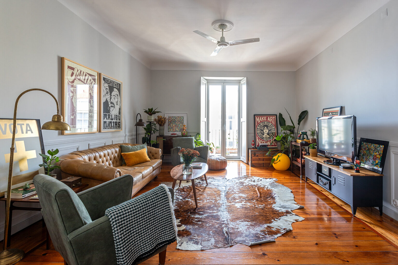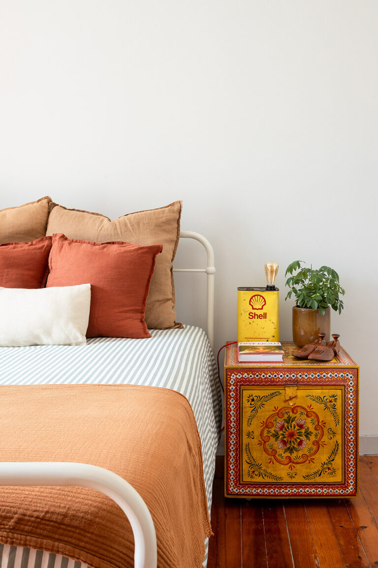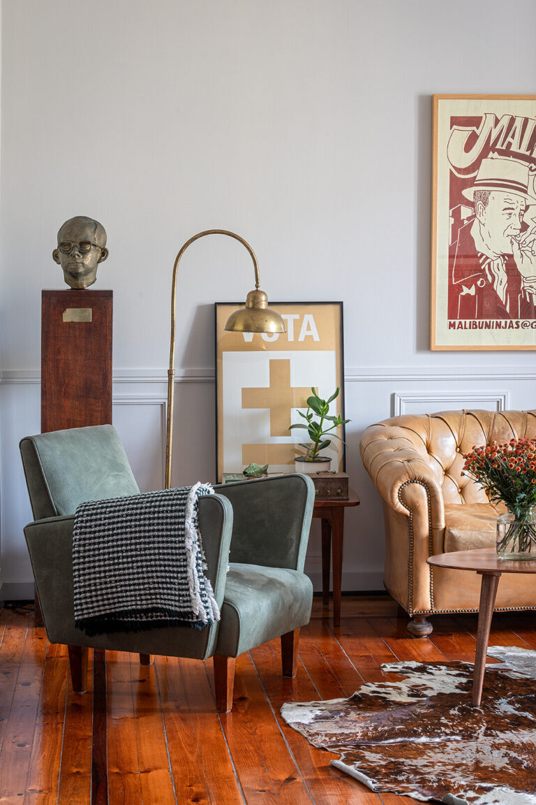 A partir dessa base histórica, construímos uma narrativa visual onde o mid-century se cruza com apontamentos urbanos e escolhas contemporâneas, criando um ambiente sofisticado mas descontraído. Peças com história, materiais quentes e elementos de portugalidade ajudam a reforçar a autenticidade do conjunto, aproximando-o tanto das raízes do edifício como da nossa forma de habitar.
