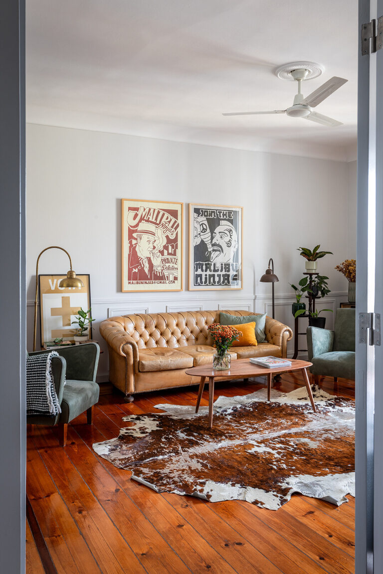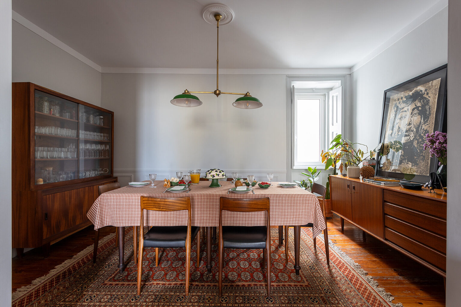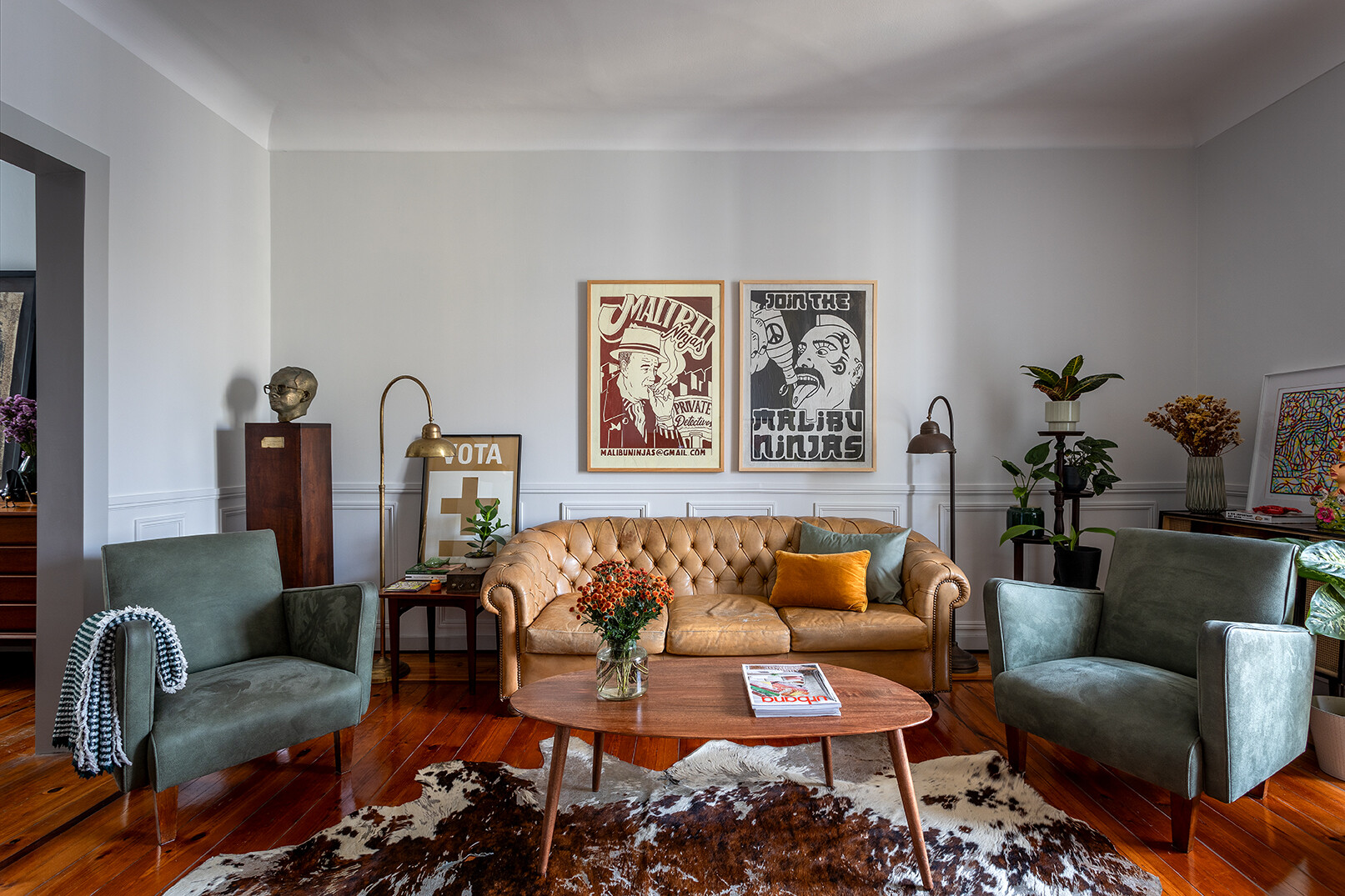 A partir dessa base histórica, construímos uma narrativa visual onde o mid-century se cruza com apontamentos urbanos e escolhas contemporâneas, criando um ambiente sofisticado mas descontraído. Peças com história, materiais quentes e elementos de portugalidade ajudam a reforçar a autenticidade do conjunto, aproximando-o tanto das raízes do edifício como da nossa forma de habitar.